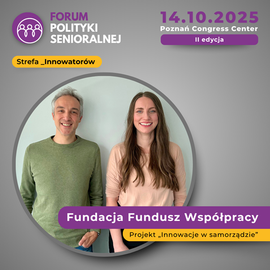 Przez dwa dni – 13 i 14 października – zapraszamy do wyjątkowej Strefy Innowatorów, organizowanej przez ROPS w Poznaniu w ramach Forum Polityki Senioralnej. To przestrzeń, w której spotkasz twórców nowoczesnych rozwiązań dla seniorów, porozmawiasz z praktykami i poznasz innowacje możliwe do wdrożenia w gminach, instytucjach i organizacjach.